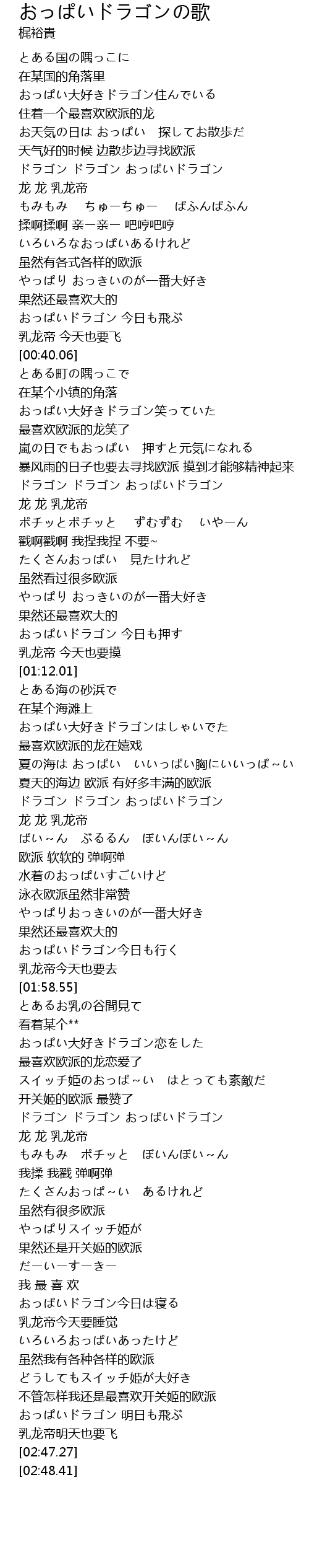 | [02:02.47] | おっぱい大好きドラゴン恋をした |