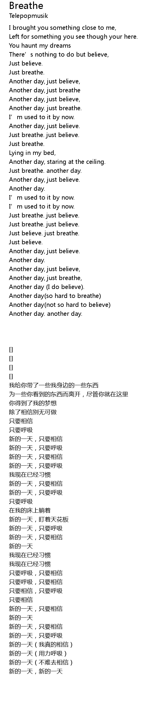 | [03:22.57] | Just breathe. just believe. |