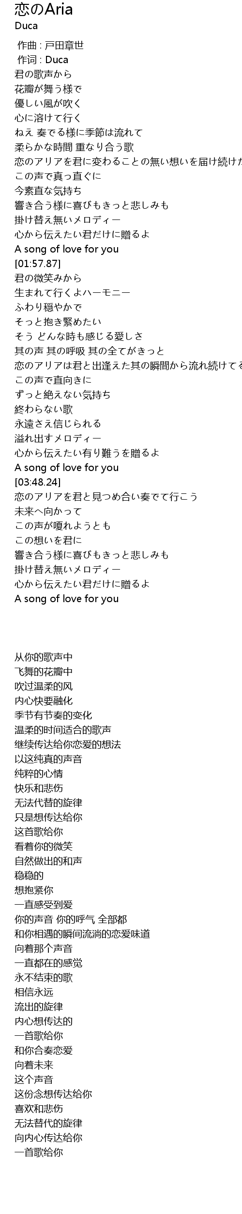 | [01:52.44] | A song of love for you |