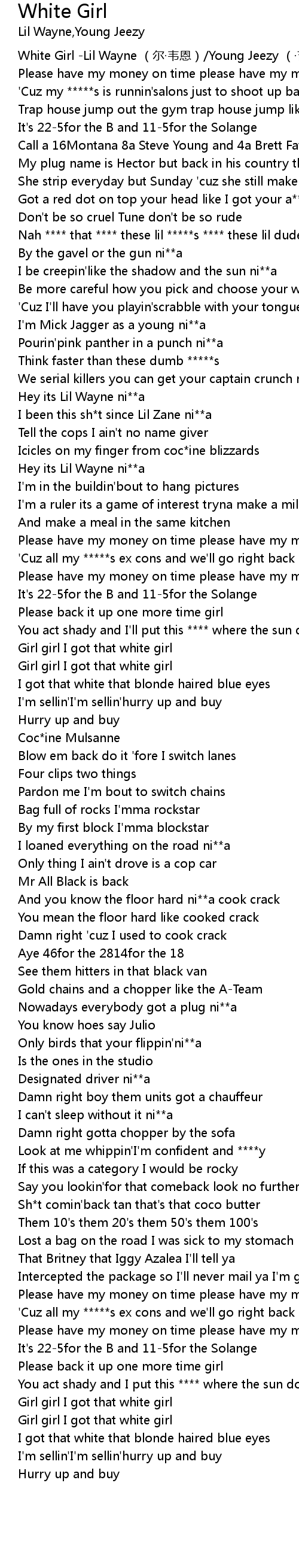 | [00:00.00] | White Girl Lil Wayne er wei en Young Jeezy ji zi |