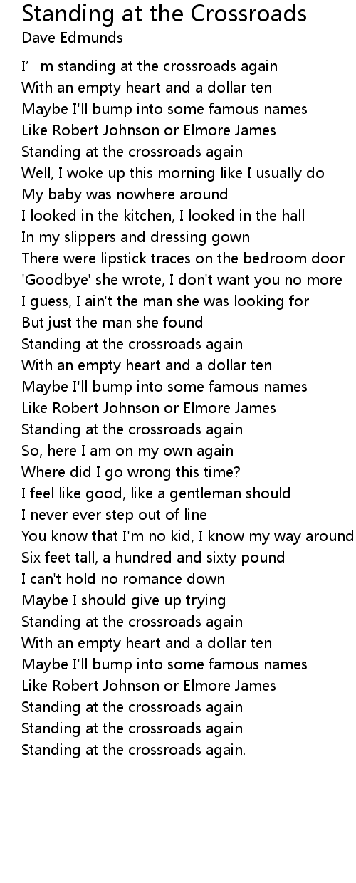 | I’m standing at the crossroads again | |