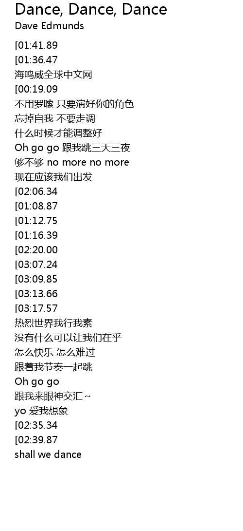 | [03:33.06][03:17.57][02:32.08][01:31.17] | Dance Dance Dance |