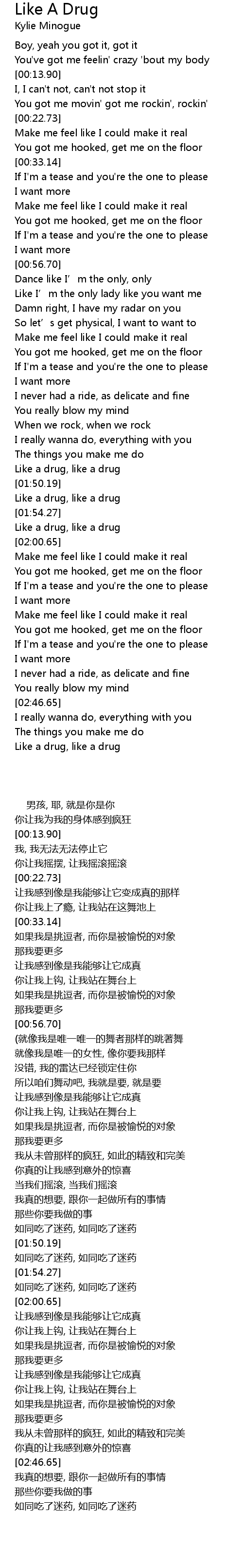 | [01:56.81] | Like a drug, like a drug |