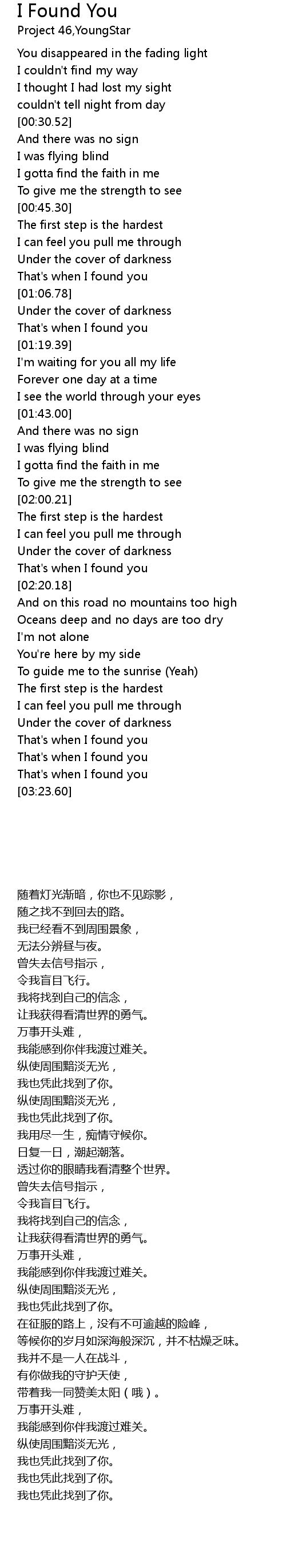 | [03:00.92] | That's when I found you |