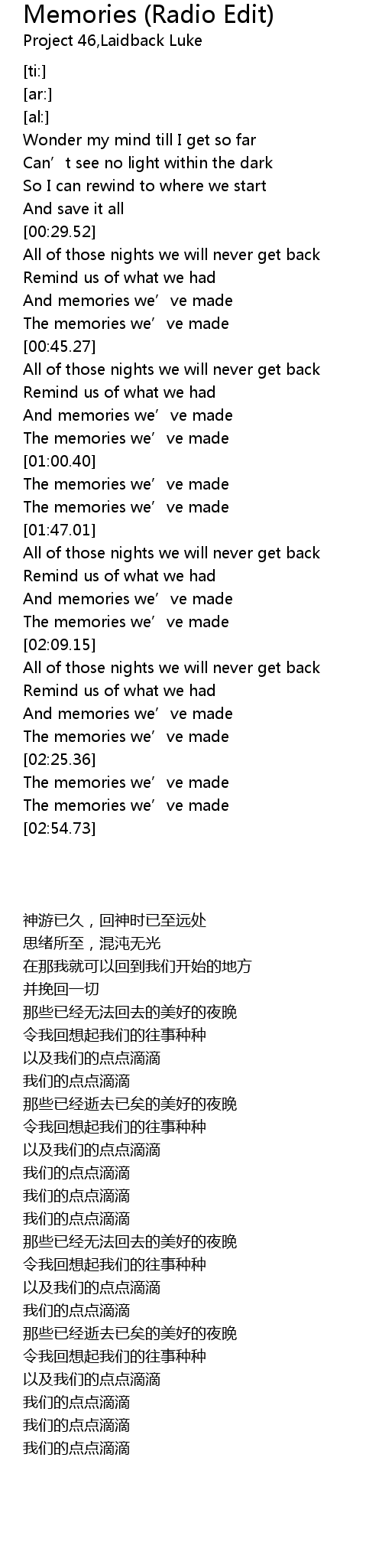 | [02:35.81] | The memories we’ve made |