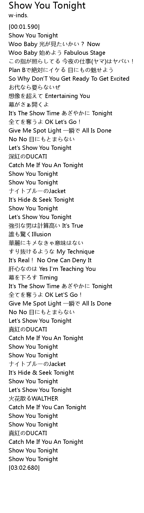 | [03:01.420] | Show You Tonight |