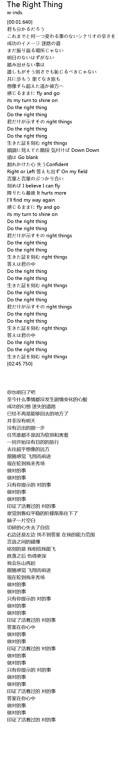 | [02:24.570] | 君だけが示すその right things |