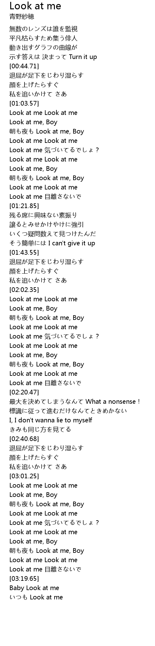 | [01:09.43] | Look at me 気づいてるでしょ? |