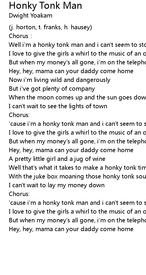| 'cause i'm a honky tonk man and i can't seem to stop | |
