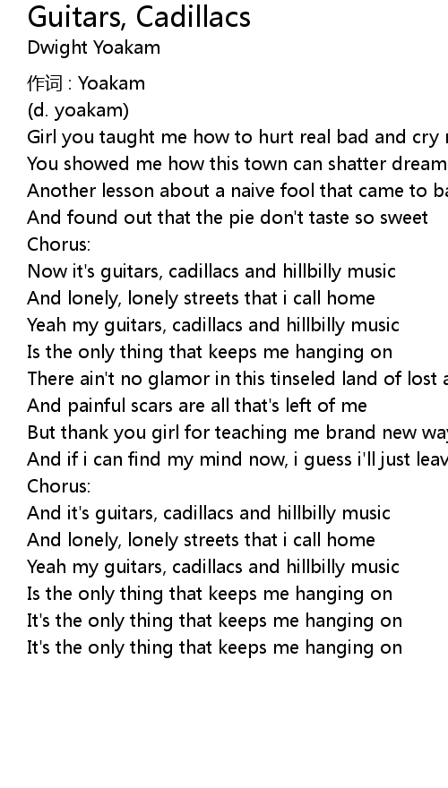 | Yeah my guitars, cadillacs and hillbilly music | |