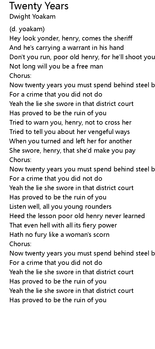 Now twenty years you must spend behind steel bars |