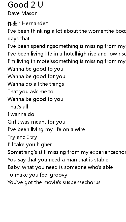 | Wanna be good to you | |