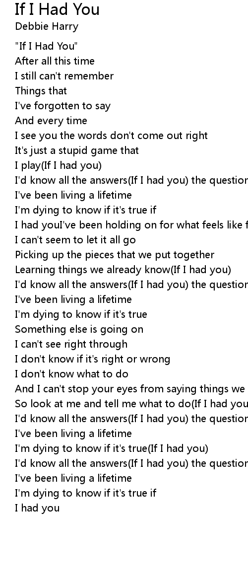 I'd know all the answers(If I had you) the questions wouldn't even matter |