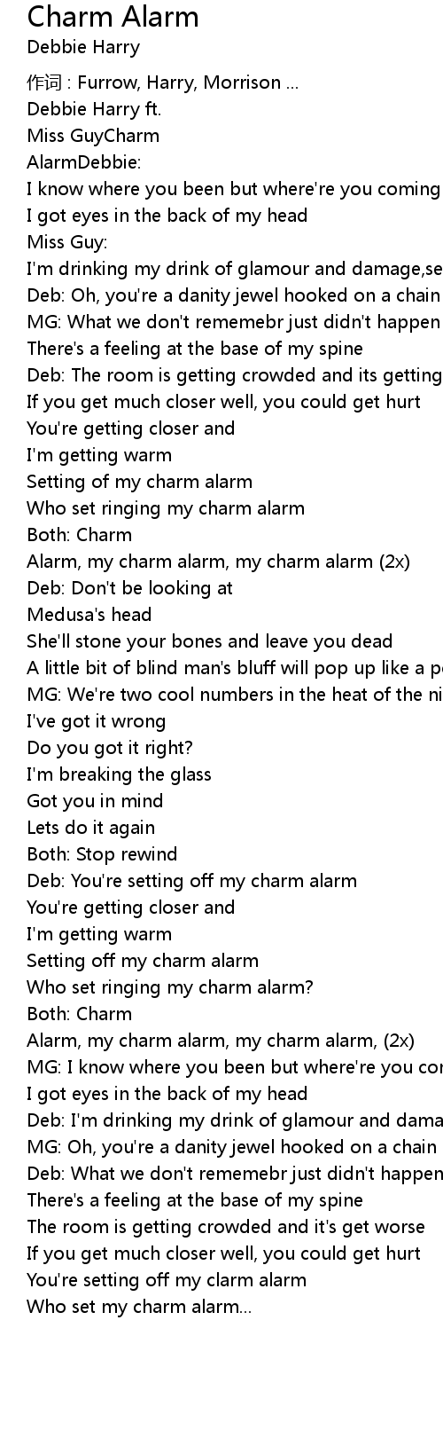 | Alarm, my charm alarm, my charm alarm (2x) | |