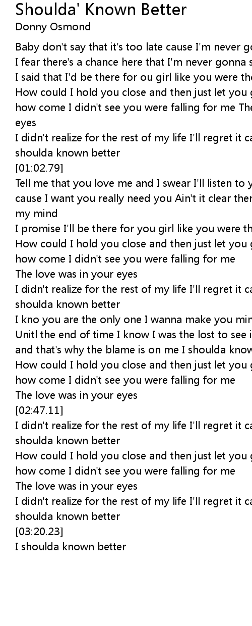 I shoulda known better |