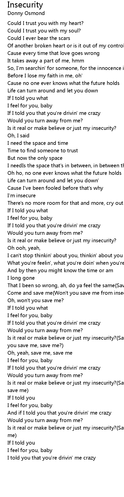 That I been so wrong, ah, do ya feel the same(Save me from insecurity) |