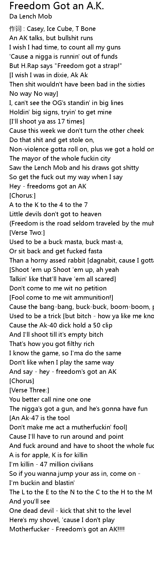 | And say hey freedom' s got an AK | |
