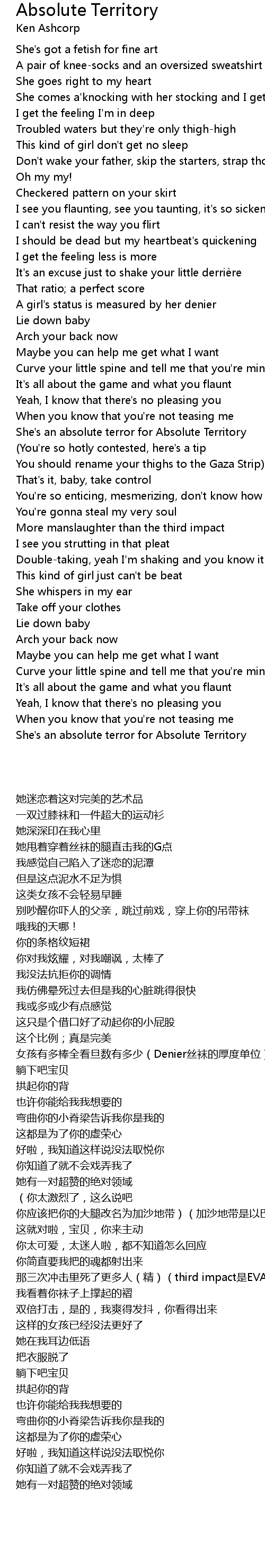 | [02:31.00] | She' s an absolute terror for Absolute Territory |