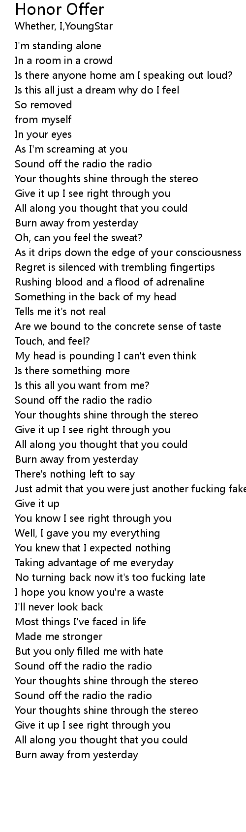 | [01:35.469] | Sound off the radio the radio |