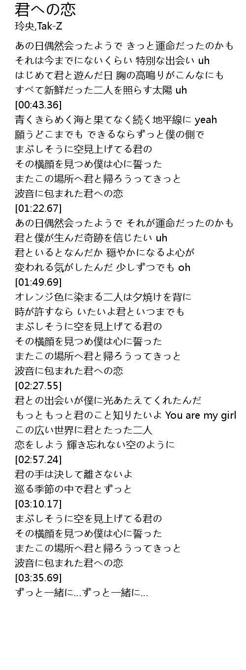 | [02:35.85] | もっともっと君のこと知りたいよ You are my girl |