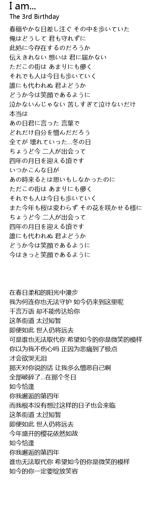 | [03:16.940] | 誰にも代われぬ 君よどうか どうか今は笑顔であるように |