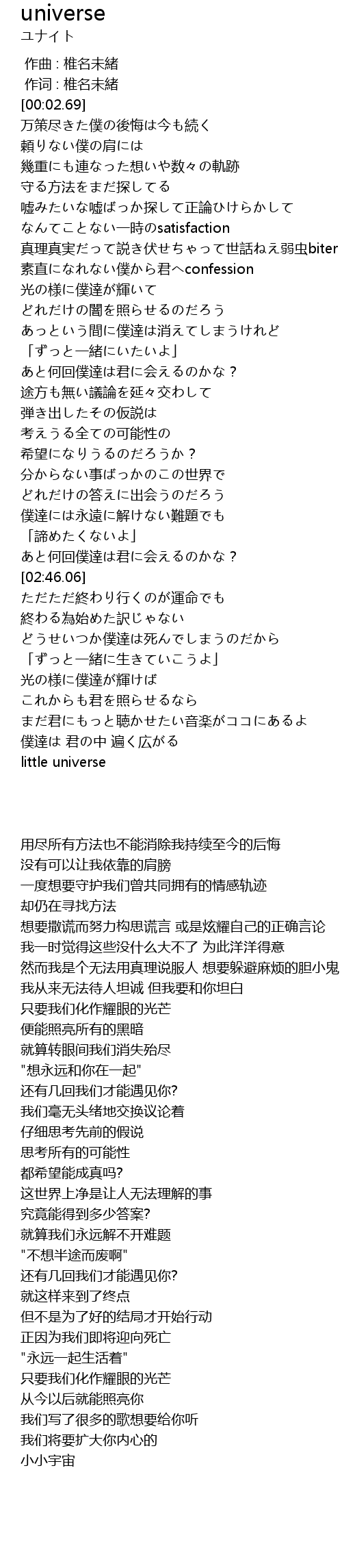 | [02:21.61] | 分からない事ばっかのこの世界で |