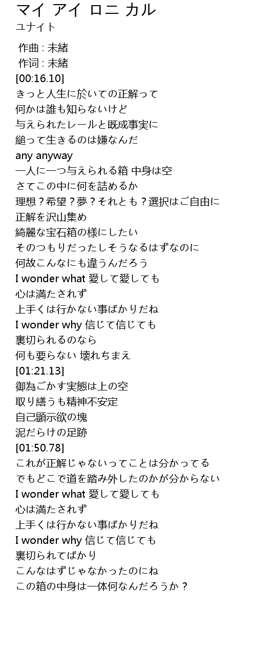 | [00:52.38] | 何故こんなにも違うんだろう |
