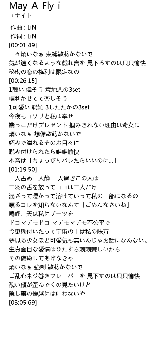 | [02:55.97] | 醜い顔が歪んでくの見たいけど 隠し事の優越には叶わないや |