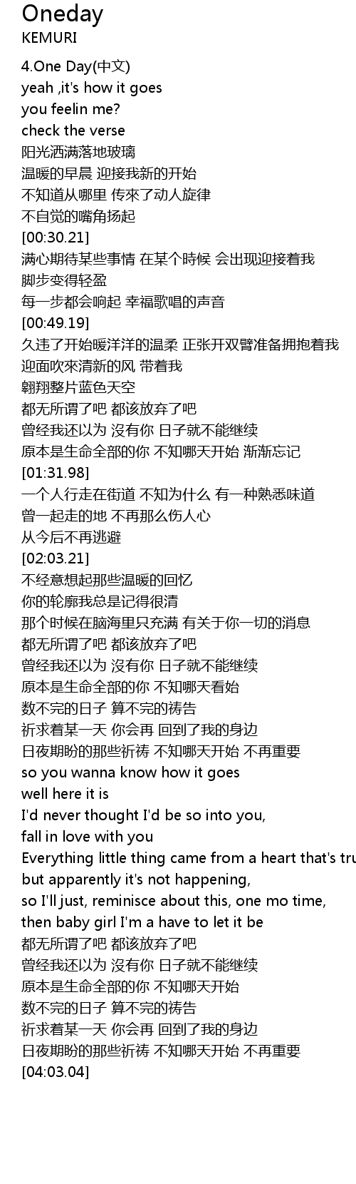 | [00:-0.69] | 4. One Day zhōng wén |