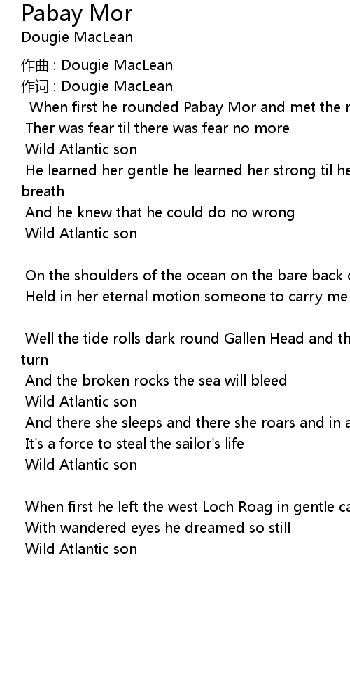 | 作词 : Dougie MacLean | |