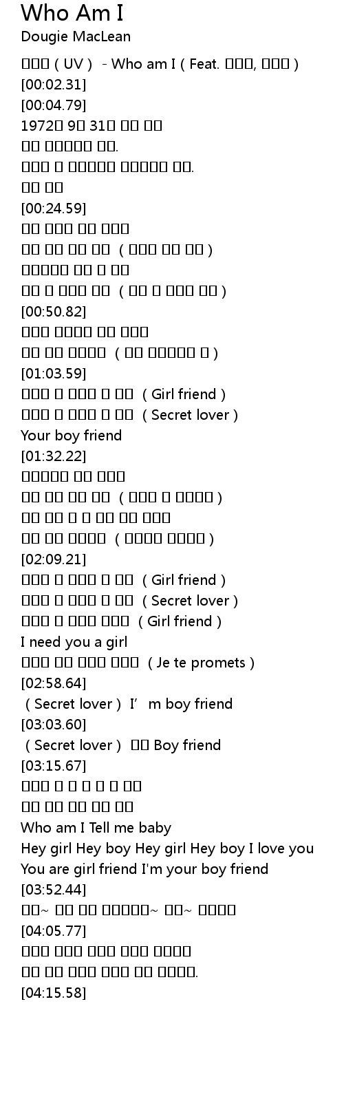 | [00:00.20] | 유브이(UV) - Who am I(Feat. 유희열, 정재형) |