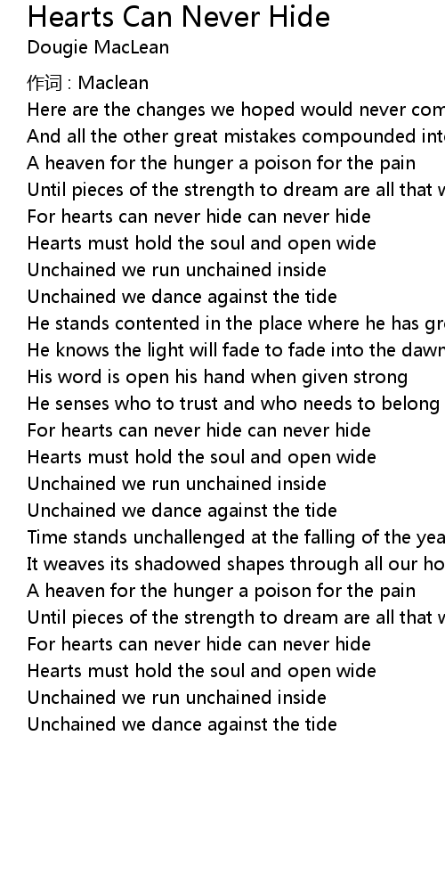 | For hearts can never hide can never hide | |