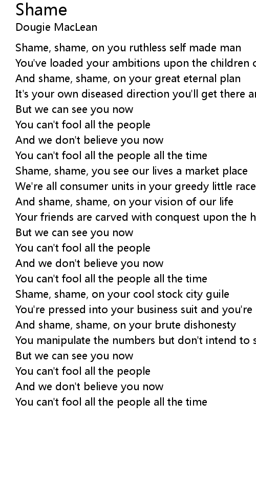 Shame, shame, on you ruthless self made man |