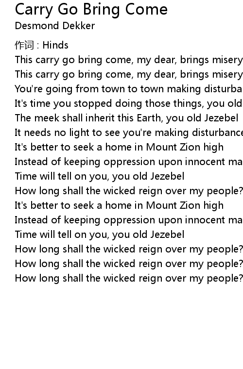 | Song | Carry Go Bring Come |