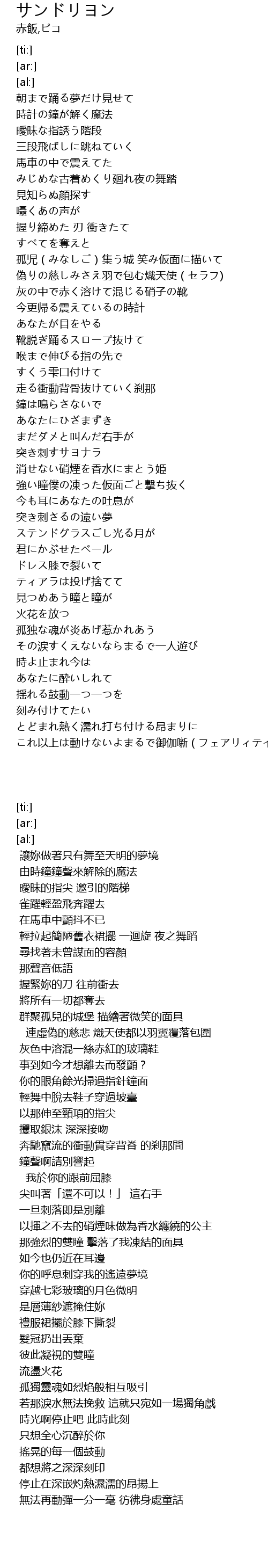 | [01:03.05] | みじめな古着めくり廻れ夜の舞踏 |
