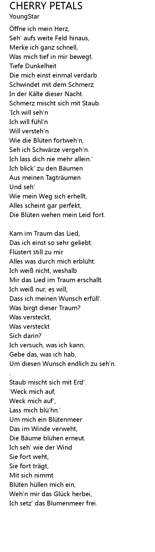 | [02:57.43] | Dass ich meinen Wunsch erfü ll'. |
