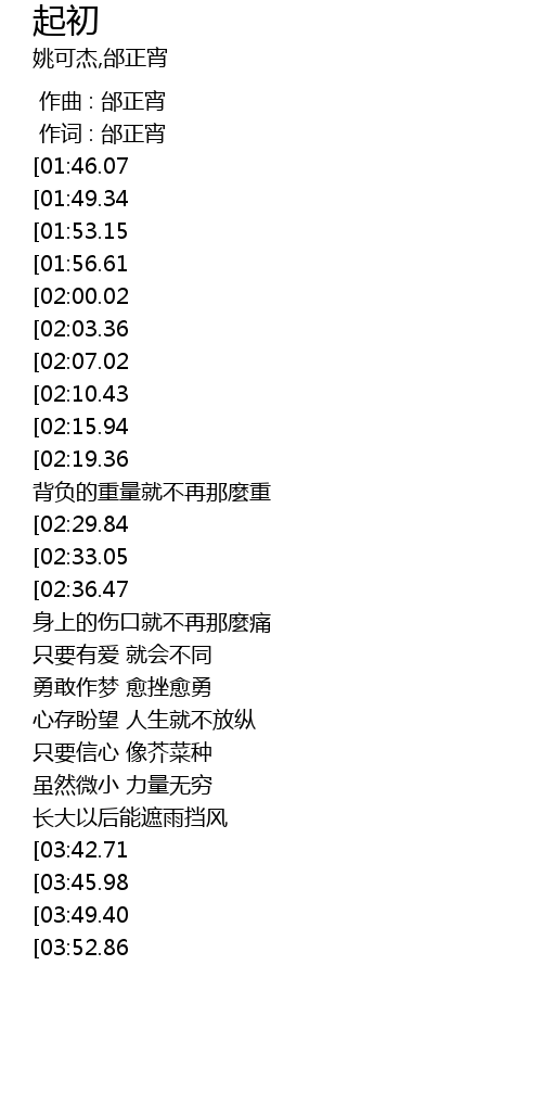 | [00:48.50][02:00.02] | 起初的爱 起初的梦 |