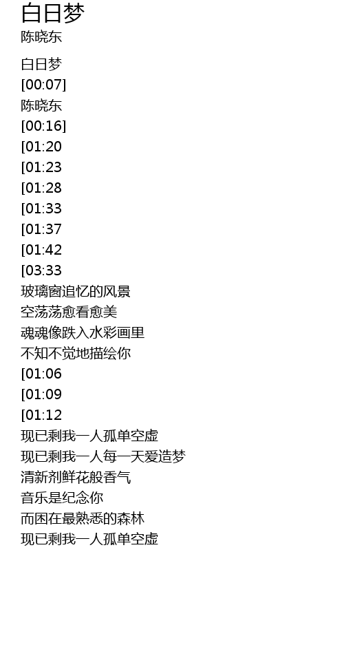 | [01:15] | xiàn yǐ shèng wǒ yī rén gū dān kōng xū |