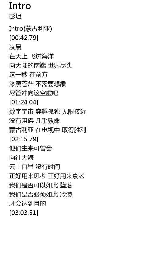 | [00:02.53] | Intro(蒙古利亚) |