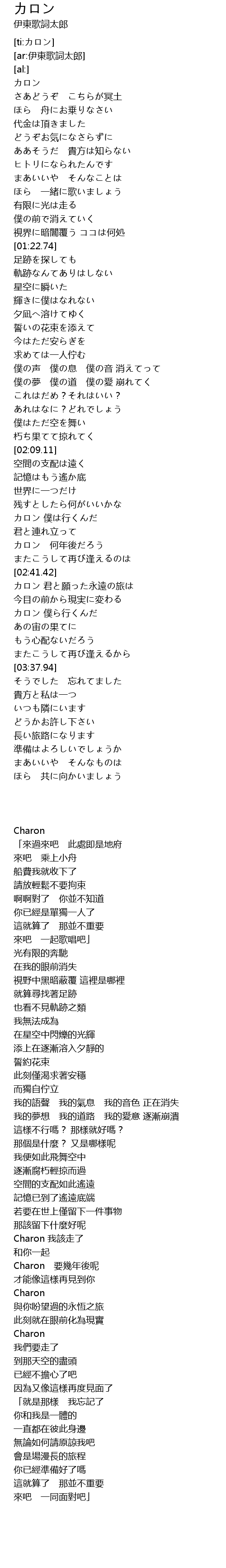 | [03:02.09] | カロン 君と願った永遠の旅は |