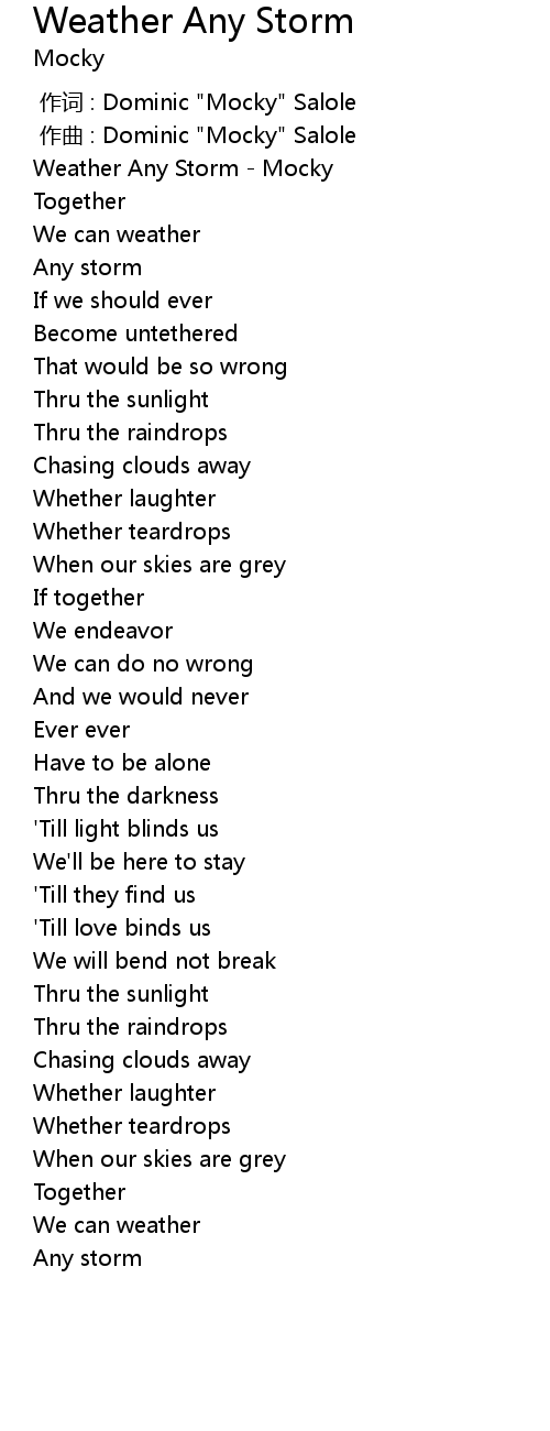 | [00:00.000] | 作词 : Dominic "Mocky" Salole |