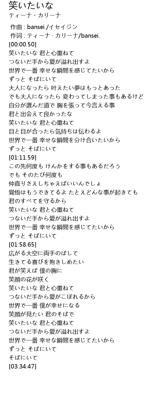 | [00:47.65] | 笑いたいな 君と心重ねて |