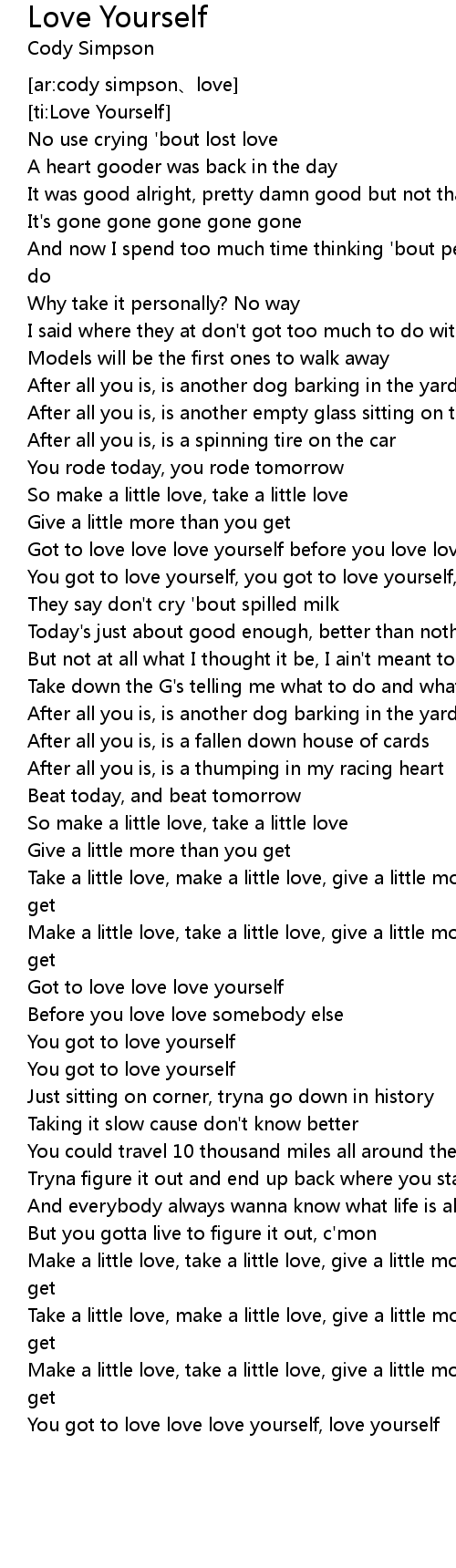 | [04:15.05] | You got to love love love yourself, love yourself |