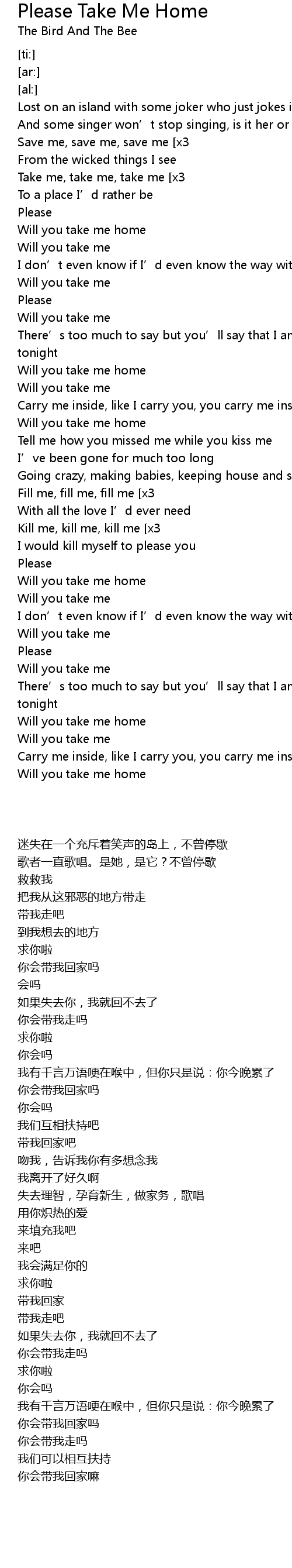 | [02:39.07] | Will you take me home |