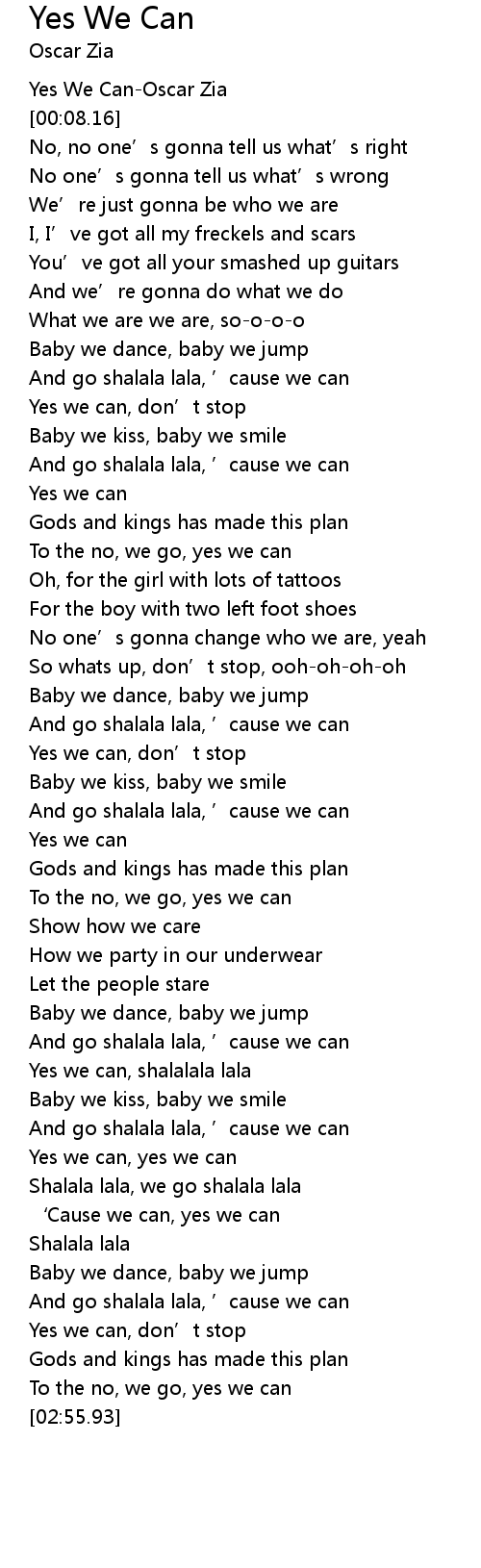| [00:00.46] | Yes We Can-Oscar Zia |