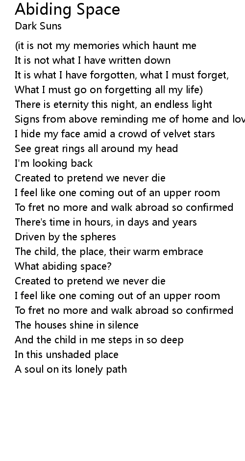 | What abiding space? | |