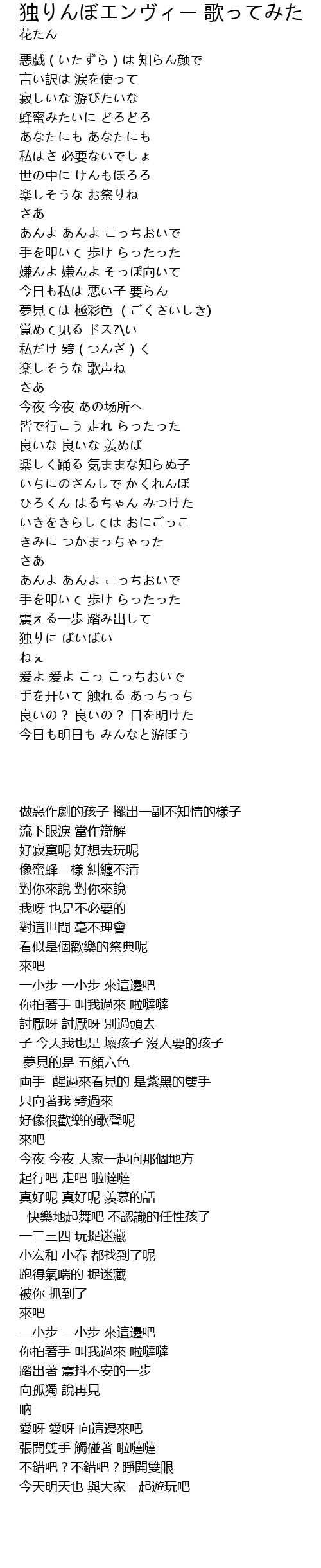 独りんぼエンヴィー 歌ってみた