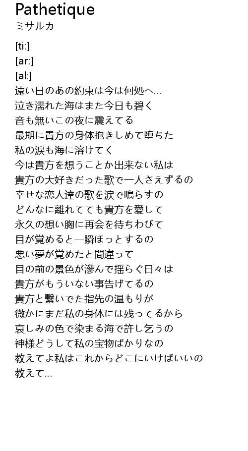| [02:21.63] | 幸せな恋人達の歌を涙で鳴らすの |