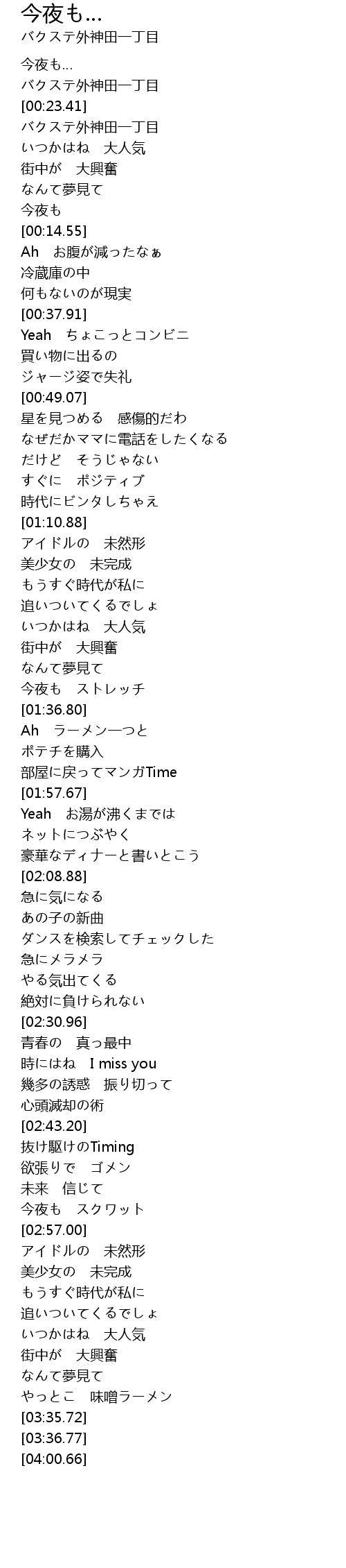 | [00:02.53] | バクステ外神田一丁目 |