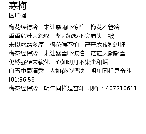 | [02:07.19] | 梅花经得冷 明年同样是奋斗 制作:407210611 |